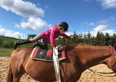 Kromě jízdárenského výcviku se jezdí i na vyjížďky do okolních lesů – začátečníci s vodiči, děti si vyzkouší i jízdu bez sedla a protáhnout při voltižním cvičení na lonži.